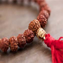 A Rudraksha rosary is most commonly prepared from five faced beads that are available most abundantly and also in various sizes . In Devi Bhagwat Puran one can read about method of preparation of Rudraksha mala for counting beads while chanting mantras. The main mouth (whole side) part of a Rudraksha is called Brahma, the middle part Rudra (Shiva) and the hind part Vishnu. Thus the Trinity form of Lord Rudra gives the worldly pleasures and salvation to man in this world.